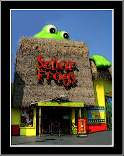 Let me start off by clarifying a few : 1.) Senor Frogs IS the same place you have heard tied to lots of debaucherous Spring Break moments (and probably many of which made it on a "girl's gone wild" video) 2.) I have NEVER been to a Senor Frogs before (parents were much smarter than to allow that) and 3.) if you enter a bar that has bartenders walking around with test tubes of shots and you are over 30 years old - turn around and walk back out. With that said... I was taking out one of my managers in Myrtle Beach as a thank you for the hard work she's been putting in... so after dinner we decided to check out the night life that Senor Frogs offered. She had heard they played decent music and served good cocktails... and with it being a Wednesday night we figured it couldn't be too crazy. Right?! Wrong! Hands down we were the oldest people in the entire joint (and let's clarify that we are both in our thirties and still get carded so we aren't a bunch of wrinkled hags)... and when I say oldest.. I think the next age group down was between 18-21. Girls on the bar shaking their money makers looking all of 12 years old. Test tube shots (which we kindly declined the 7 times we were asked)... lots of fruity drinks but no real wine or even martini selections... it was all very reminiscent of Spring Break from year past. The music WAS fabulous... so the DJ gets kudos.... but again it was all very mainstream and loud. Overall we had fun just catching up and sipping a margarita... but I definitely left swearing I'd never go back. Not a great feeling to get looks by kids who idolize Justin Beiber like "ok momma... whatcha doing in here!?"